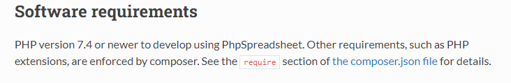PhpSpreadsheet 에서는 7.4 버번 이상을 안내하고 있다.