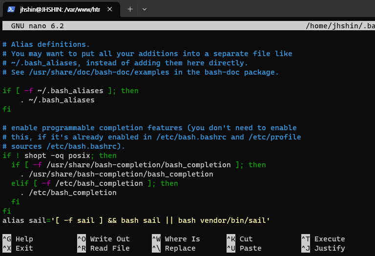 nano ~/.bashrc 등록하기