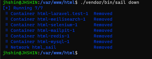 라라벨 실행 시 -d 옵션을 주면 라라벨 실행하고 나서 shell 새로운 명령어를 입력할수 있다.