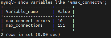 Too many connections 와 같은 커넥션 오류가 발생한다면 아래명령어로 mysql 재부팅하지 않고 바로 적용하여 늘릴 수 있다.