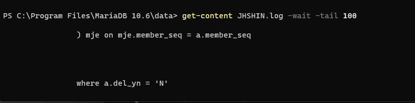 tail 관 같은 윈도우 명령어 get-content 를 사용한다.