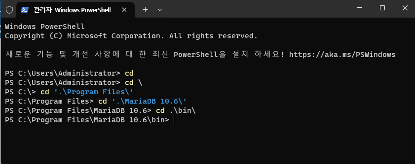 PowerShell 실행 후 tail 기능을 사용하고 싶은 위치로 이동한다.