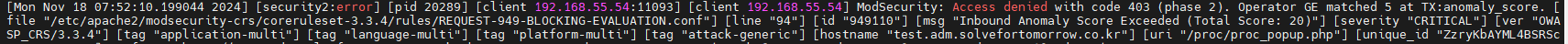 ubuntu 18.04, apache2 mod-security2 설치 및 설정.