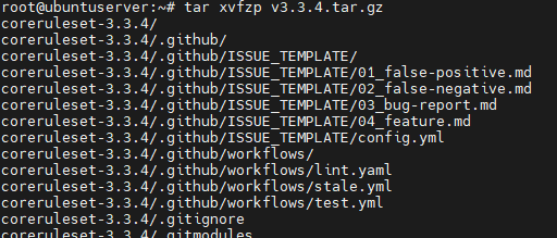 sudo wget https://github.com/coreruleset/coreruleset/archive/v3.3.4.tar.gz