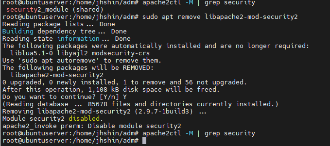 # ModSecurity 삭제